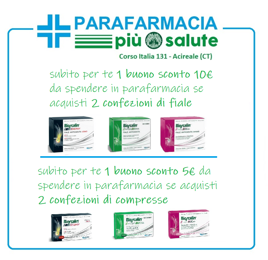 Acquistando 2 confezioni di compresse bioscalin riceverai un buono sconto da 5€ da spendere in parafarmacia.